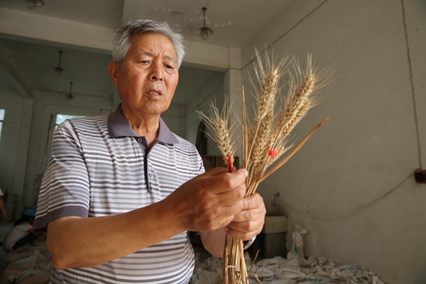 2016年6月30日,王辉教授和助手们在室内对小麦进行进一步决选