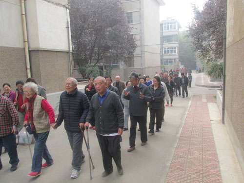 随着起始令,离退休职工便开始了全程3公里的行程。队伍在候庆春、吴志安、候喜禄、郝玉怀的带领下,迎着秋天的朝阳,浩浩荡荡,稳步行进在生活区楼宇之间的道路上。