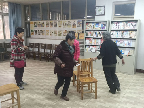 服务中心阅览室内,抢凳子和捞元宵两项游艺活动正在进行,现场欢笑不断,妙趣横生。最有趣的是抢凳子,随着音乐的响起,大家离开自己的座位,心里时刻算计着音乐何时停止,眼睛一直寻找着离自己最近的凳子,生怕一不小心自己就被淘汰出局。随着音乐一次次停止,参与人员逐次被淘汰,圈子越来越小,现场气氛也越来越热闹。虽然都是退休老人,但在游戏中个个洋溢着孩童般的笑脸。
