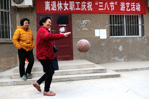 3月7日下午,林科院校区离退休职工服务中心为了迎接“三八”国际劳动妇女节,举办了庆“三八”游艺活动,校区近20名离退休女职工参加了活动,活动项目有拍篮球、夹乒乓球。