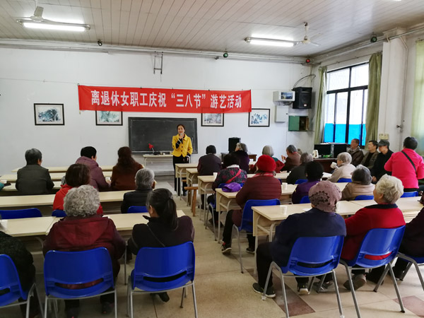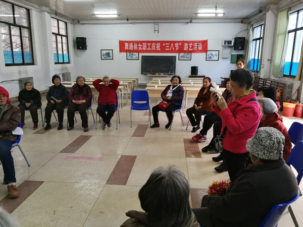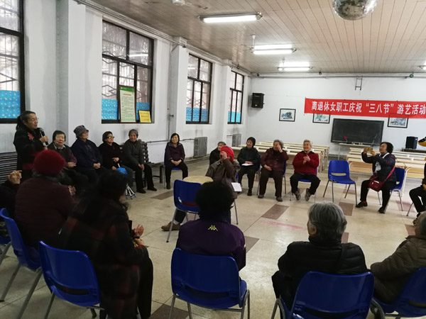 3月6日下午,喜逢全国“两会”召开之际,为庆祝第109个“三八”国际劳动妇女节, 丰富离退休女职工精神文化生活,给全所女职工送上一份真挚的关怀与节日的问候,植物所校区离退休服务中心在校区俱乐部举办庆“三八”节游艺活动,在“我和我的祖国”乐曲中,30多位离退休女职工欢聚一堂。离退休工作处副处长程媛参加活动。